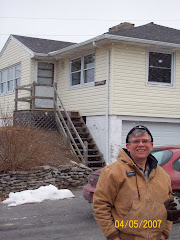 The fork lift wouldn't work on this side of the building. So we used the dump truck and a ladder to get the building done.